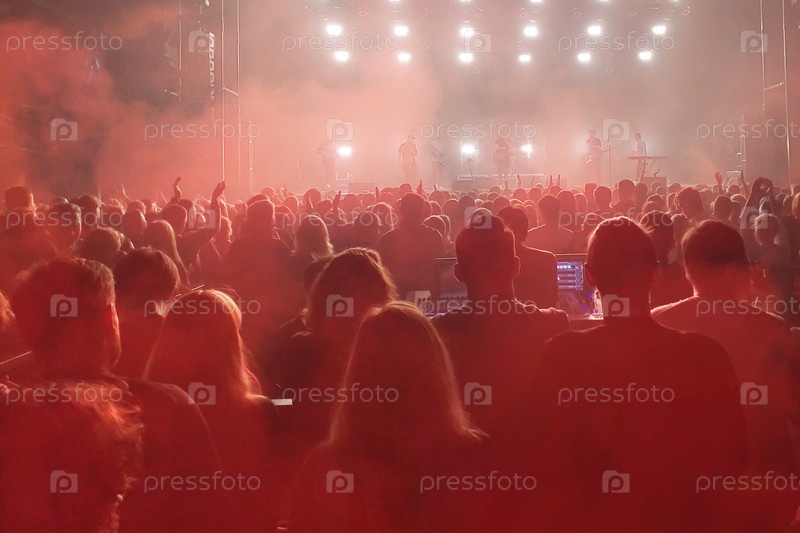 Толпа людей с поднятыми руками на танцполе в ночном клубе