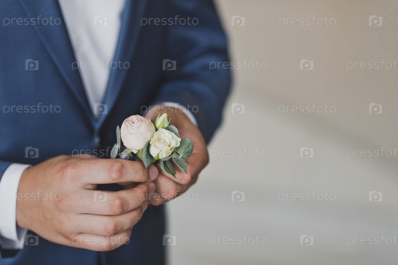 Бутоньерка в руках жениха