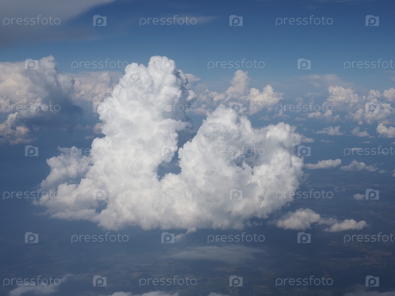 Голубое небо с облаками видно из самолета полезно в качестве фона