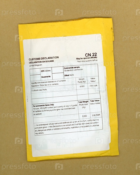 Документ таможенной декларации CN22 для международных перевозок с информацией о товарах, стоимости, отправителе и получателе