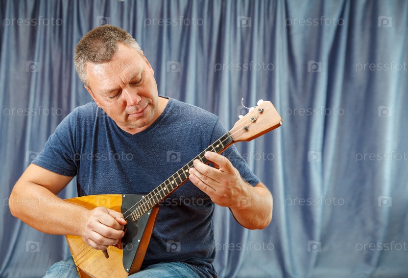Мужчина играет на балалайке