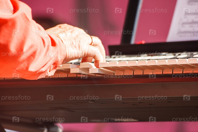 Пианист играет на джазовом фестивале в городском парке