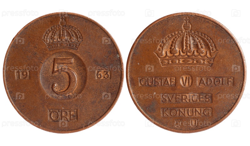 Старинная монета швеции 1921 года на белом фоне