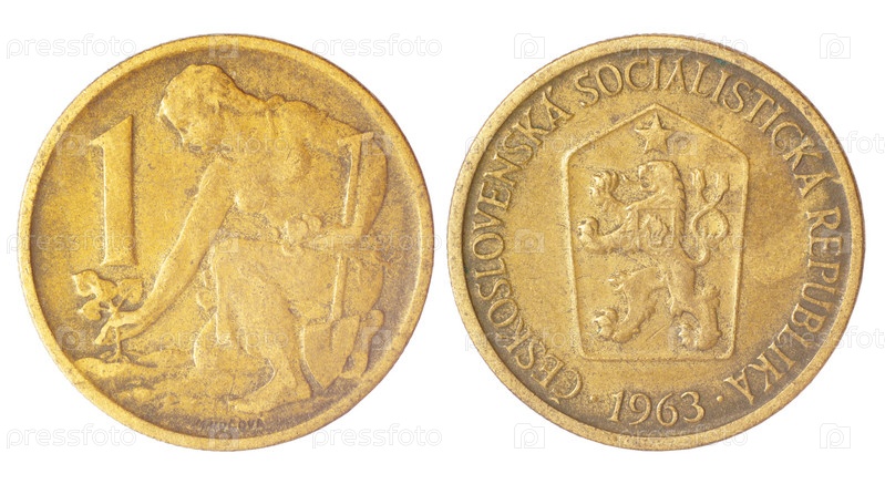 Редкая ретро чехословацкая монета на белом фоне
