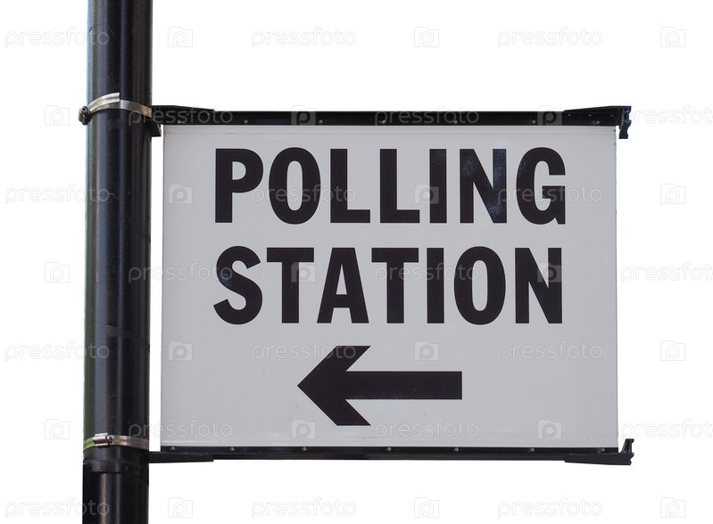 Знак избирательного участка для всеобщих выборов в Великобритании изолирован на белом фоне