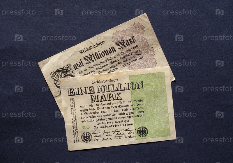 Eine und Zwei Million Mark (что означает один и два миллиона марок) 1923 год банкноты инфляционные деньги из Веймарской республики