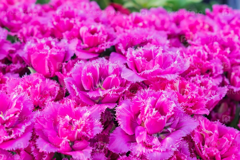Поле цветущих красочных тюльпанов, весенние цветы в саду