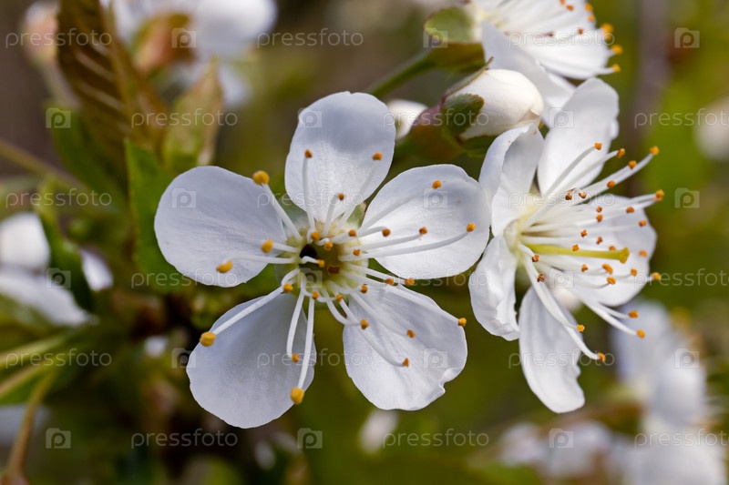 Вишни в цвету на солнечном фоне. Красивый весенний фон природы с веткой цветущей сакуры. крупным планом