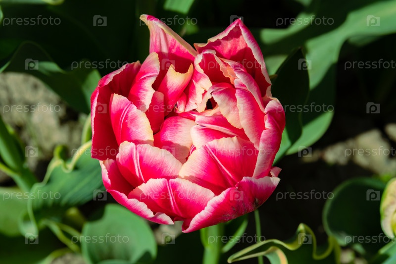 Тюльпан Колумб. это потрясающий розовый с кремово-белой каймой сорт тюльпанов. крупным планом
