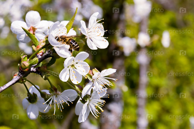 Вишни в цвету на солнечном фоне. Красивый весенний фон природы с веткой цветущей сакуры. крупным планом