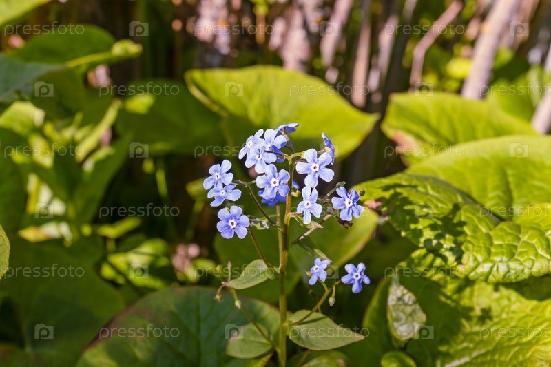 Голубые цветы Джека Фроста, также известные как ложные воспоминания. сибирский журавль brunnera macrophylla. крупный план
