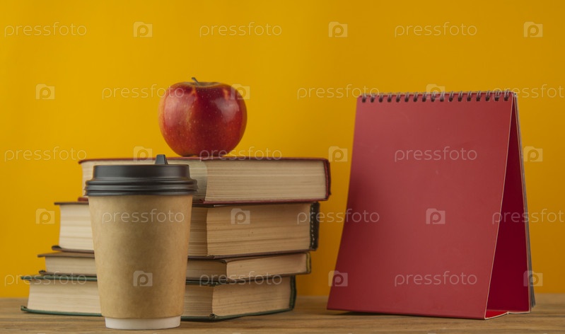 Яблоко на стопке книг на столе