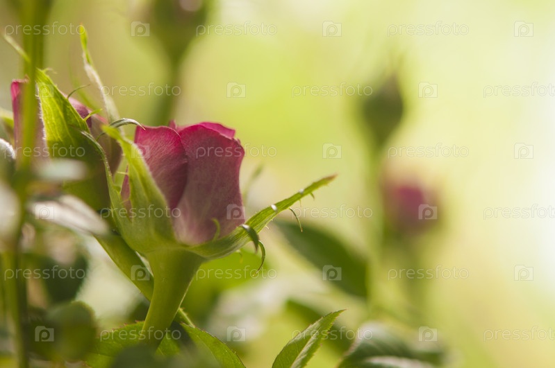 Цветущий бутон красной розы на сером фоне. Цветы в горшках. Небольшая глубина резкости