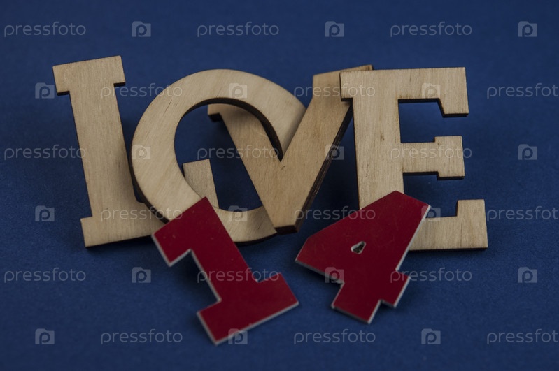 Любовное слово, маленькие сердечки на темно-синем бумажном фоне. Вид сверху на День святого Валентина