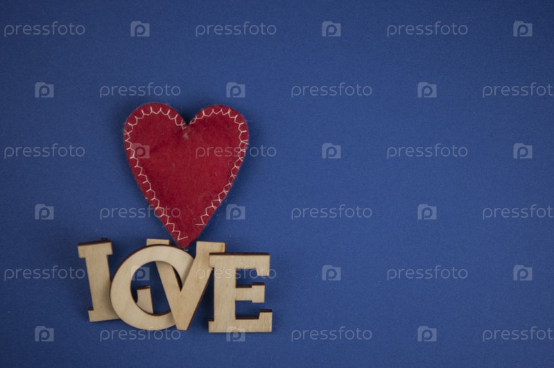 Любовное слово, маленькие сердечки на темно-синем бумажном фоне. Вид сверху на День святого Валентина