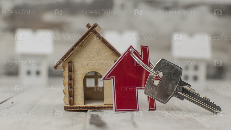 Символ дома с металлическим ключом на деревянном столе. Недвижимость, концепция страхования, ипотека, покупка дома, концепция риэлтора