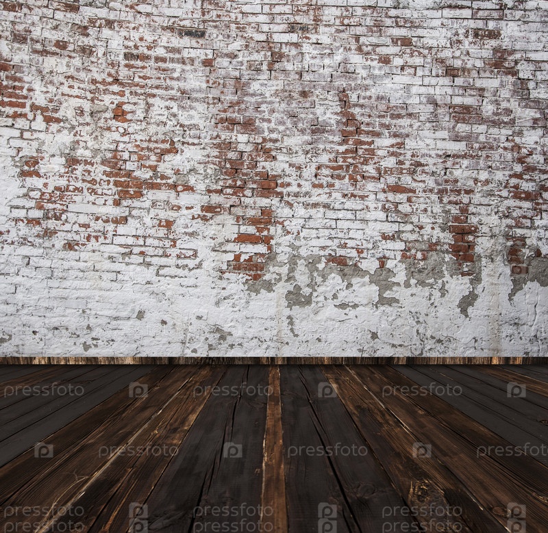 Абстрактная красная белая каменная стена городской текстуры. Старая комната с красной кирпичной стеной и деревянным полом
