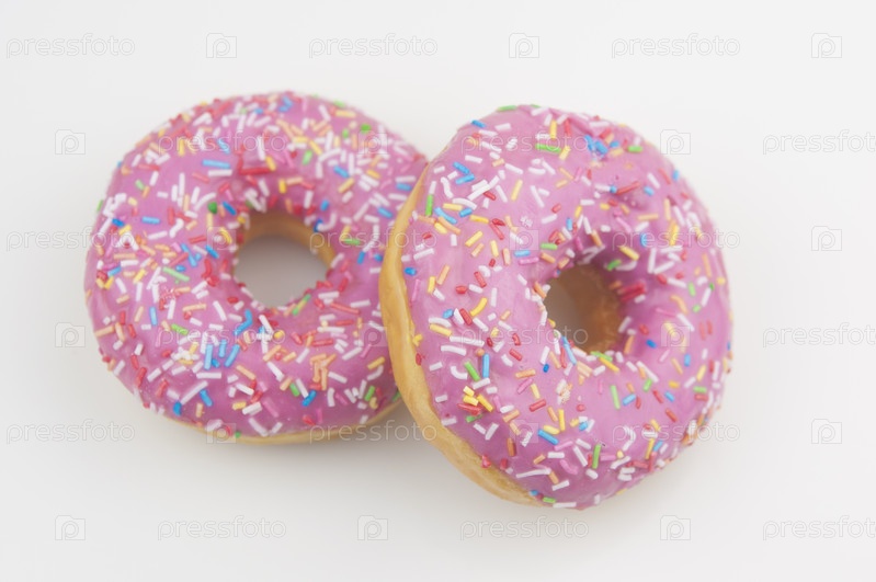 Два розовых пончика на белом фоне