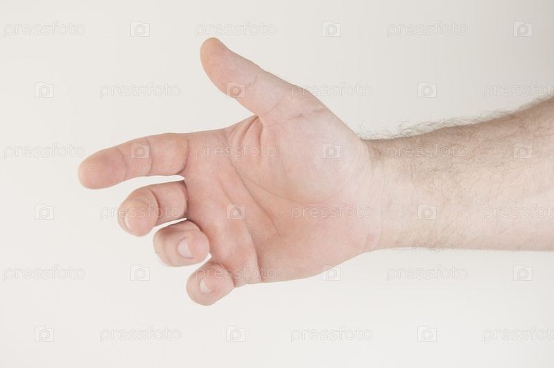 Закройте мужской кавказский протягивающий руку и готовый помочь или получить. Жест на белом фоне