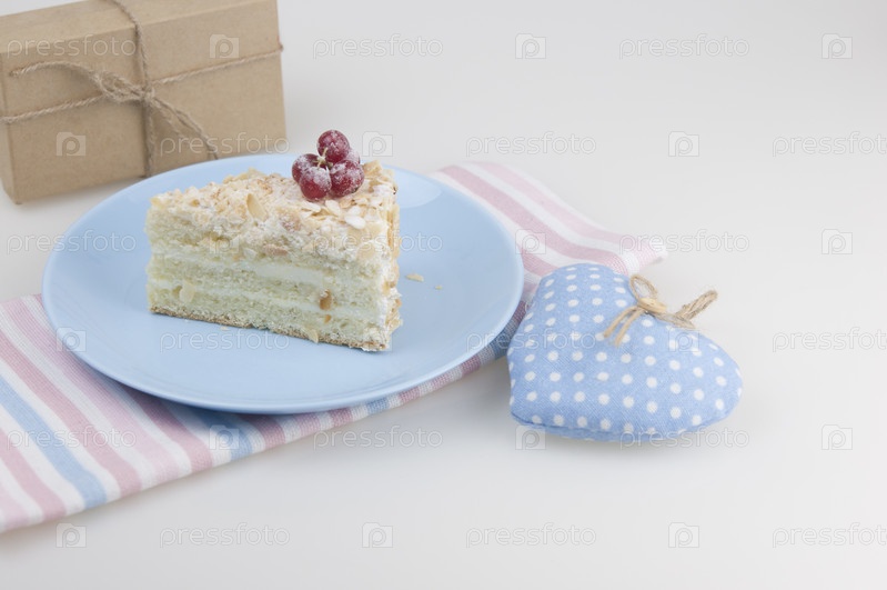 Вкусный кусок торта на тарелке на белом фоне