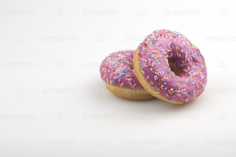 Два розовых пончика на белом фоне