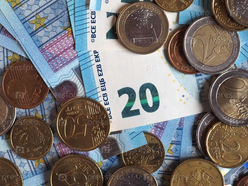 Банкноты и монеты евро (EUR), валюта Европейского Союза