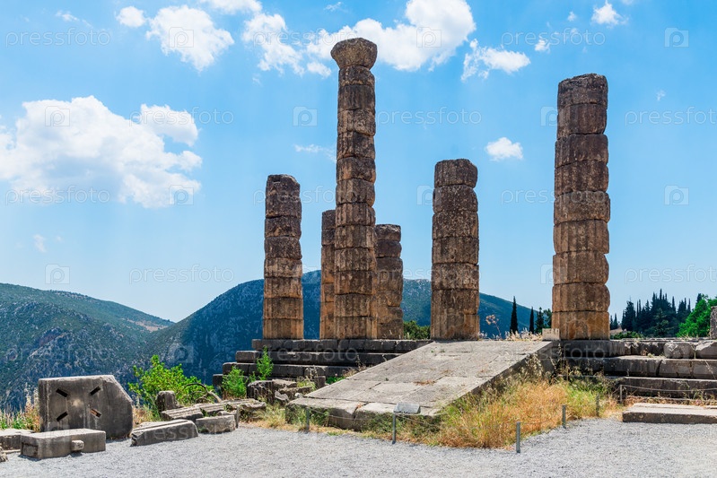 Руины древнегреческого храма Аполлона в Дельфах, Греция