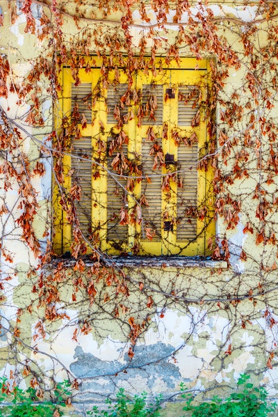 Фон - каменная стена, покрытая естественным узором из сухих зимних стеблей диких лиан