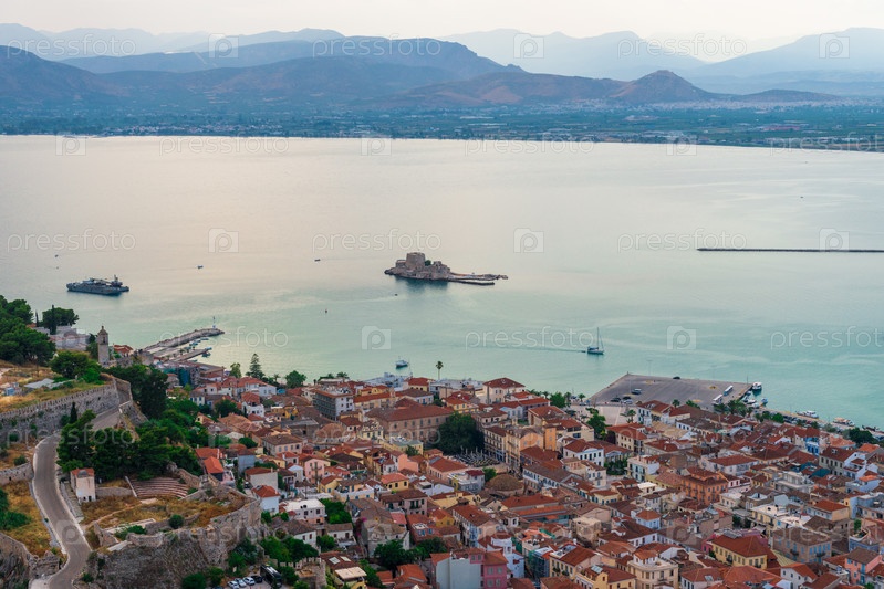 Панорамный вид на крепость Паламиди, пейзажи замка Бурдзи в городе Нафплион Греция, Пелопоннес