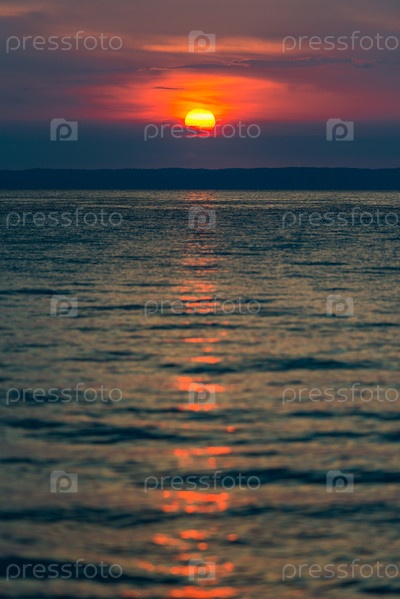 Вечернее небо с драматическими облаками над морем. Драматический закат над морем