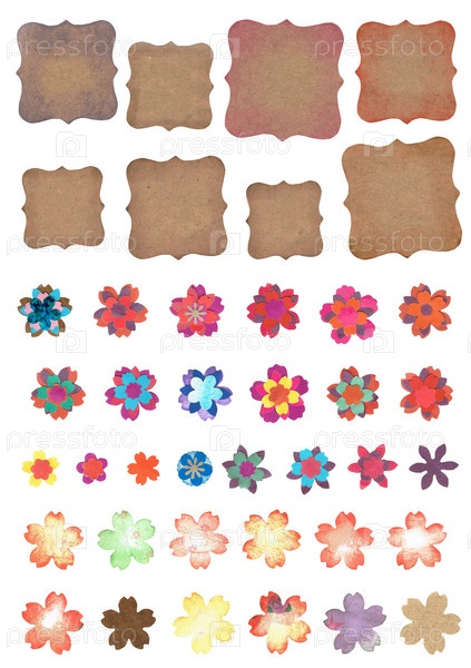 Элементы для скрапбукинга. Отдельные детали на белом фоне. Бумажные украшения для коллажей. Круги и звезды. Красивый декор для скрапбукинга