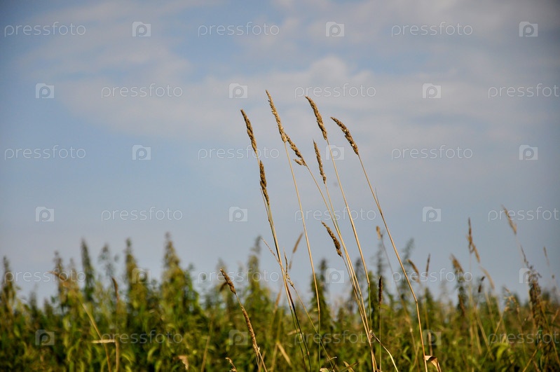 Летнее время. Дикая природа. Трава и травы. Летние цветы. Облака в небе. Летний сезон