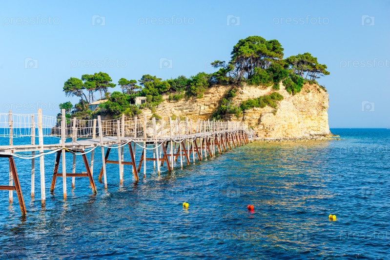 Вид на деревянный мост на остров Агиос Состис, Закинф