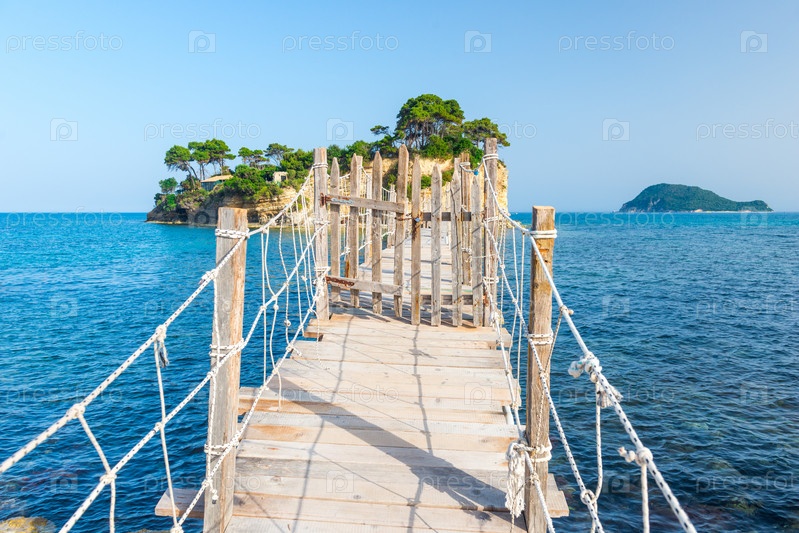 Вид на деревянный мост на остров Агиос Состис, Закинф