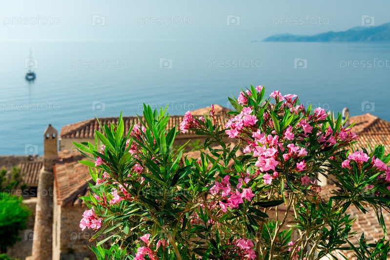 Романтическая укрепленная греческая деревня на скалистом острове Монемвасия, Пелопоннес, Греция