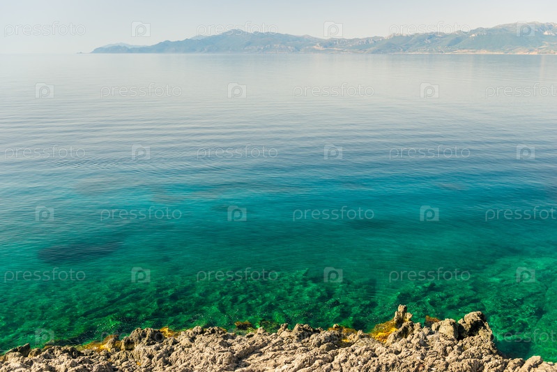 Скалистое побережье греческого острова и вид на море, пейзаж греции