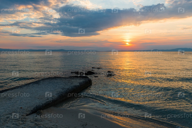 Вечернее небо с драматическими облаками над морем. Драматический закат над морем