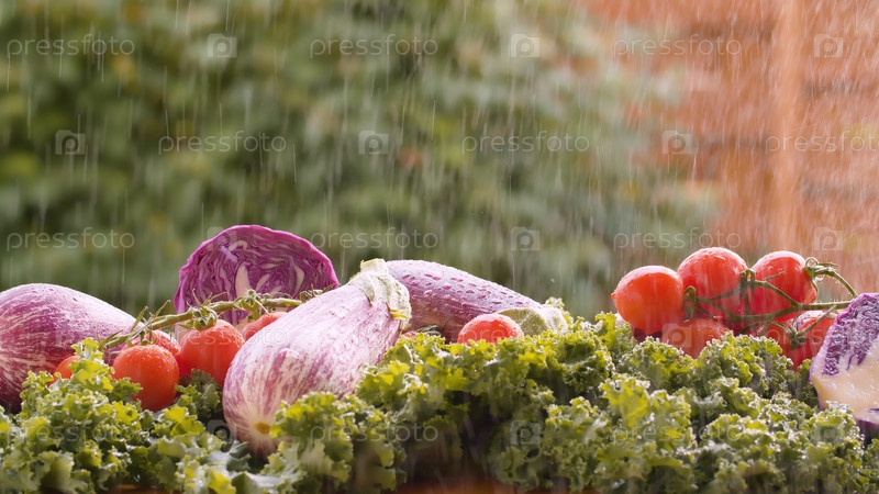 Свежие овощи под дождем