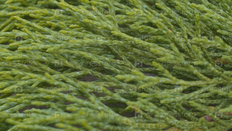 Закройте вид на зеленое растение на деревянной доске. Макросъемка. Естественный фон