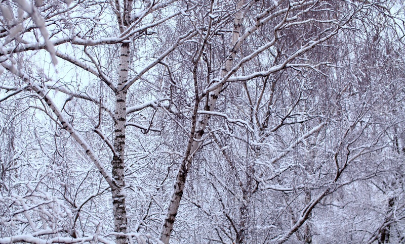 Ветки березы под снегом