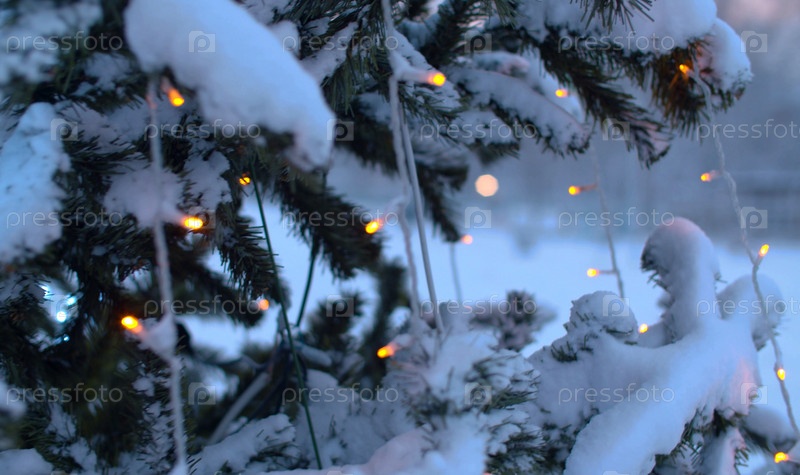 Рождественская елка на улице под снегом
