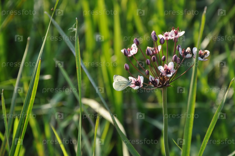 Растение Сусак зонтиковидное розовое. Фиолетовый цветок. Цветы и травы. Цветы в поле. Дикие растения