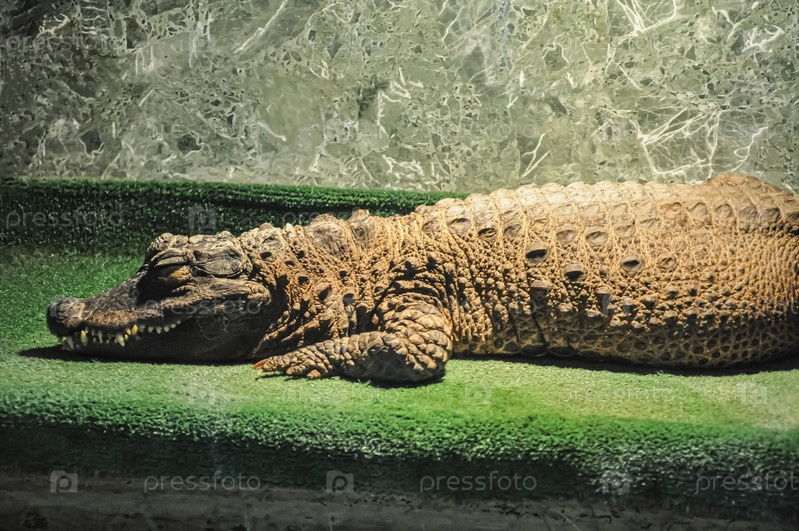 Крокодил. Лежащий крокодил. Рептилия. Крупное хищное животное