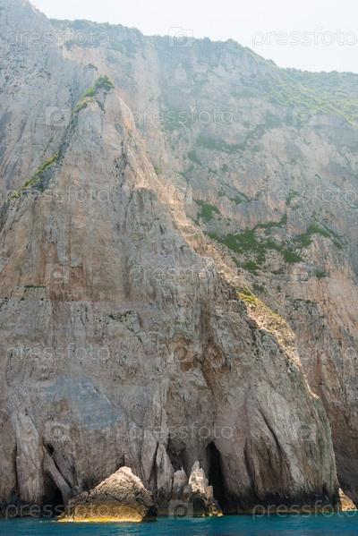 Скалистое побережье греческого острова и вид на море, пейзаж греции вид с лодки
