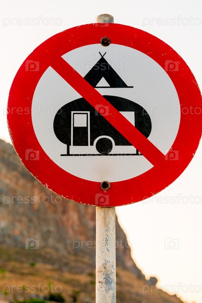 Дорожный знак запрета кемпинга, запрет кемпинга на территории