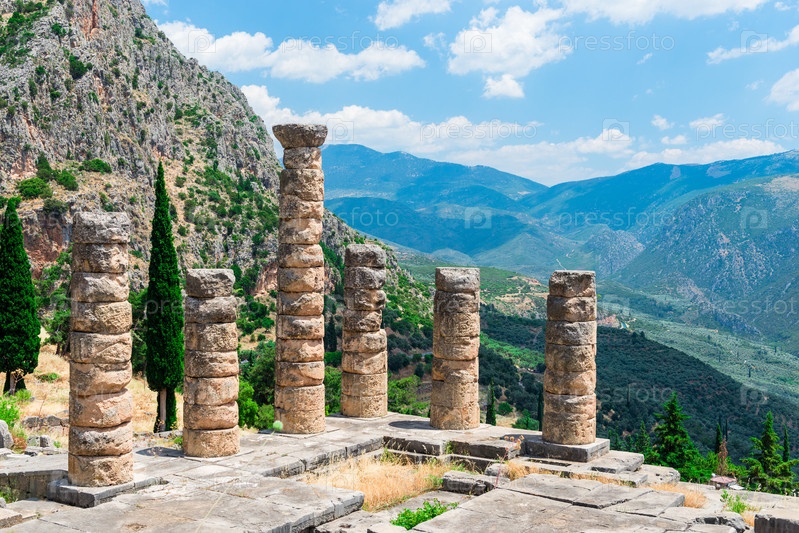 Руины древнегреческого храма Аполлона в Дельфах, Греция