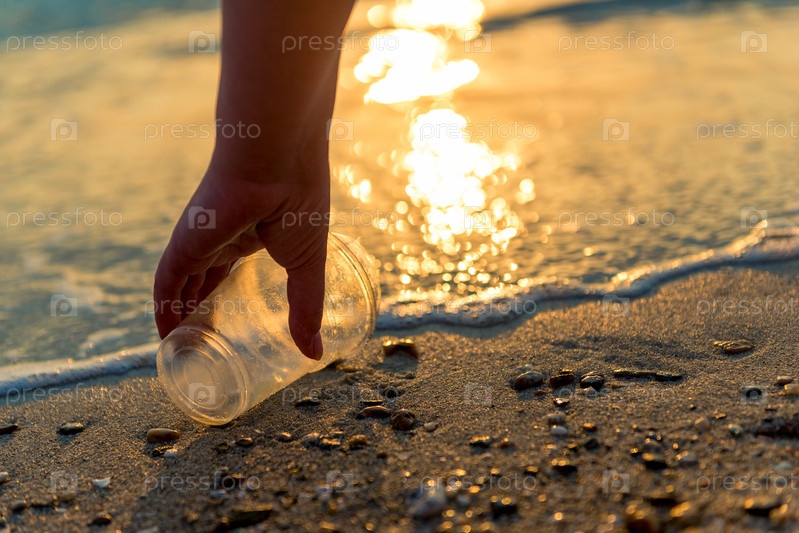 Ручная уборка и сбор пластикового мусора на пляже