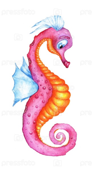 Морской конек акварель