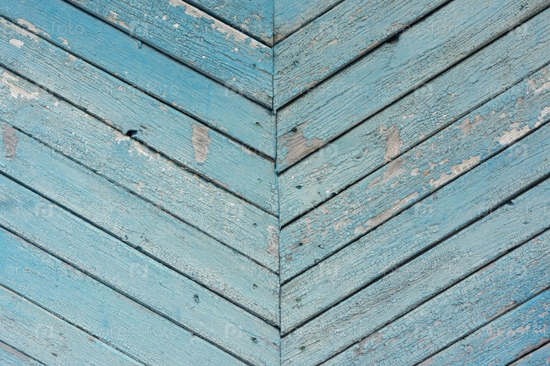 Стена деревянного дома с облупившейся голубой краской