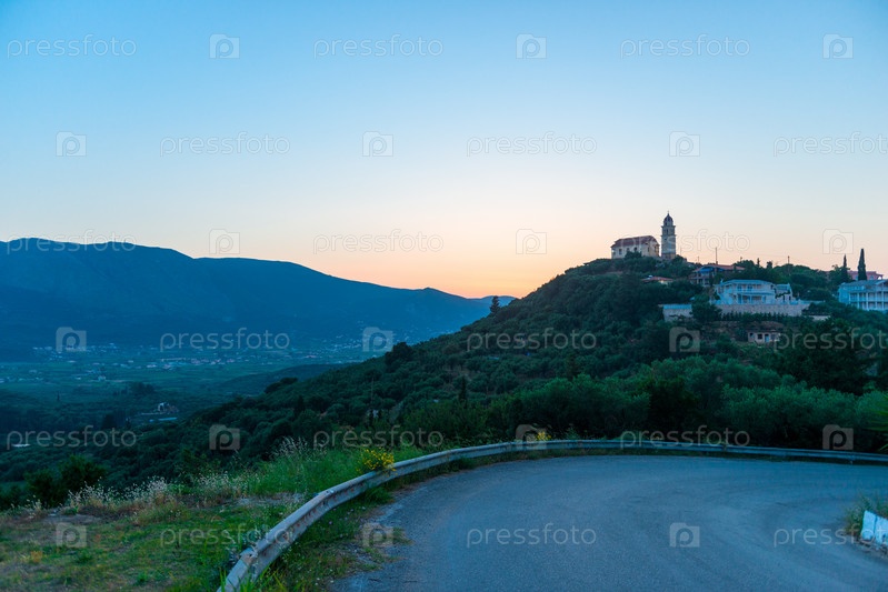 Дорога в горы на закате